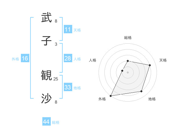 武子 観沙さんの総格は44画の2点!