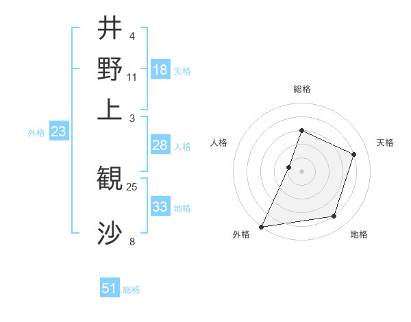 井野上 観沙さんを姓名の画数から五運を鑑定