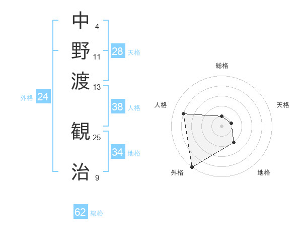 中野渡 観治さんを姓名の画数から五運を鑑定