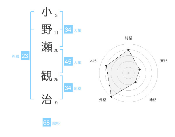 小野瀬 観治さんを姓名の画数から五運を鑑定