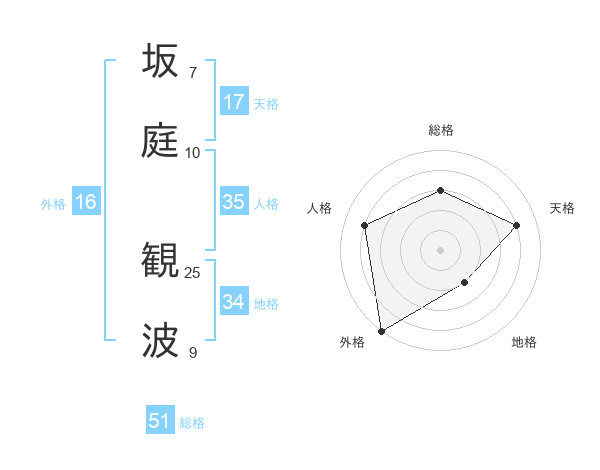 坂庭 観波さんを姓名の画数から五運を鑑定