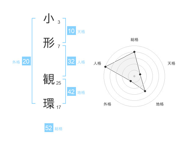 小形 観環さんの総格は52画の4点!