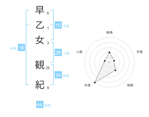 早乙女 観紀さんを姓名の画数から五運を鑑定