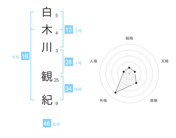 白木川 観紀さんを姓名の画数から五運を鑑定