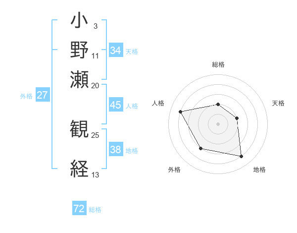 小野瀬 観経さんを姓名の画数から五運を鑑定