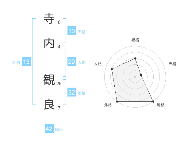 寺内 観良さんの総格は42画の3点!