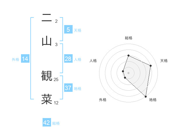 二山 観菜さんを姓名の画数から五運を鑑定