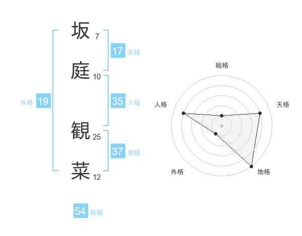 坂庭 観菜さんを姓名の画数から五運を鑑定