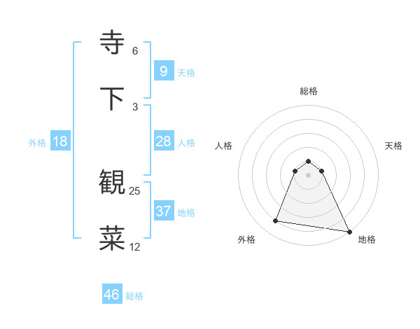 寺下 観菜さんの外格は18画の4点!