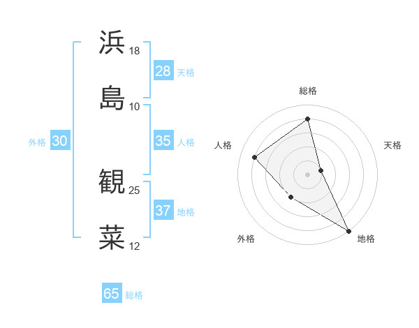 浜島 観菜さんを姓名の画数から五運を鑑定