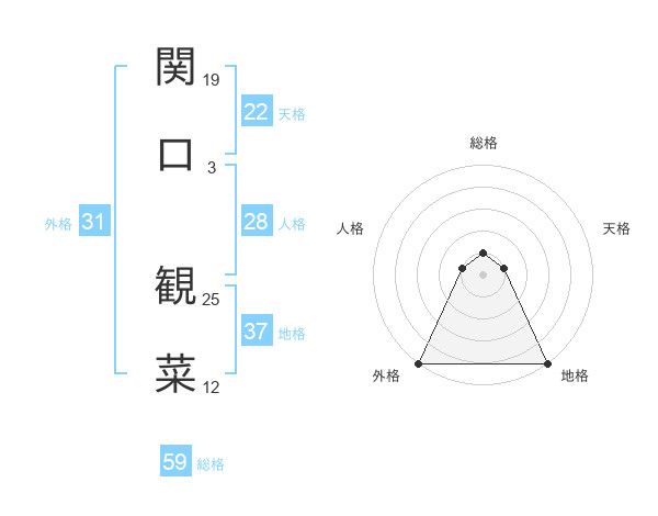 関口 観菜さんの総格は59画の1点!