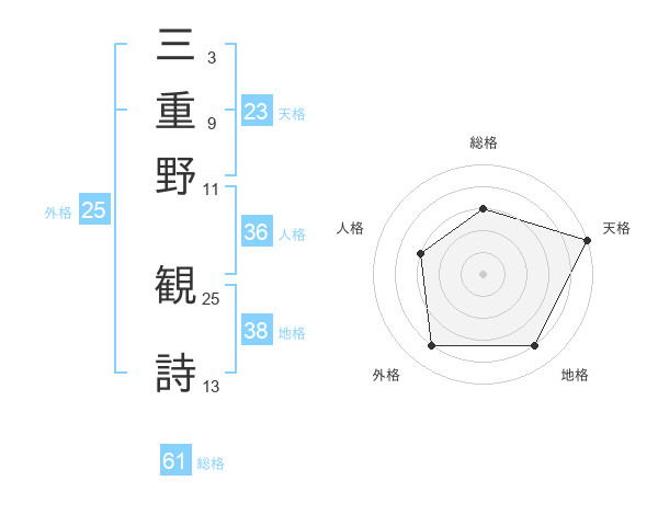 三重野 観詩さんを姓名の画数から五運を鑑定