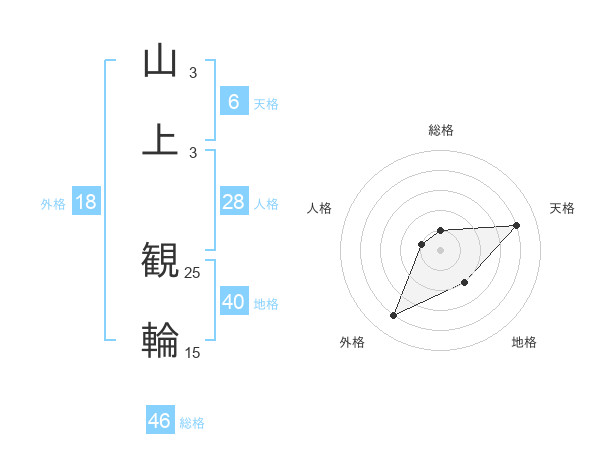 山上 観輪さんの総格は46画の1点