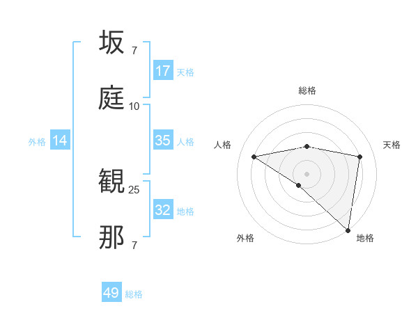 坂庭 観那さんを姓名の画数から五運を鑑定