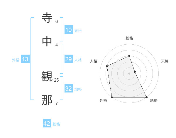 寺中 観那さんを姓名の画数から五運を鑑定