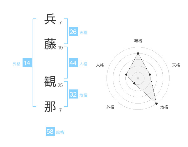 兵藤 観那さんを姓名の画数から五運を鑑定