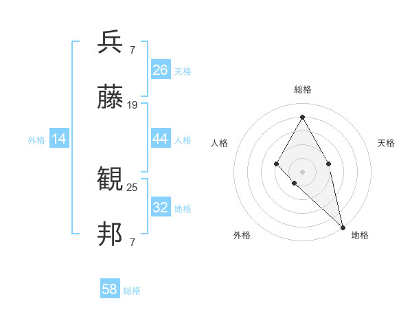 兵藤 観邦さんを姓名の画数から五運を鑑定
