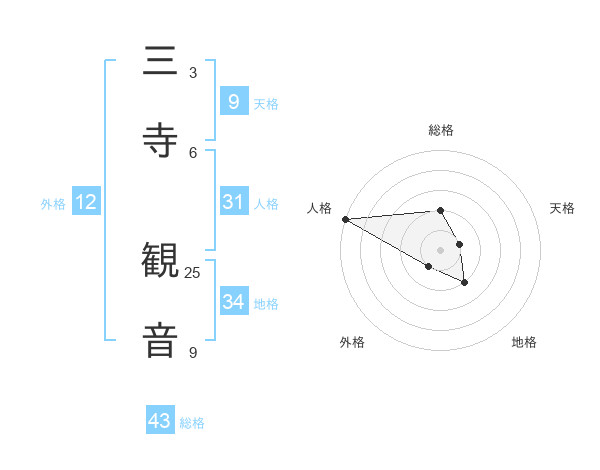 三寺 観音さんの総格は43画の2点!