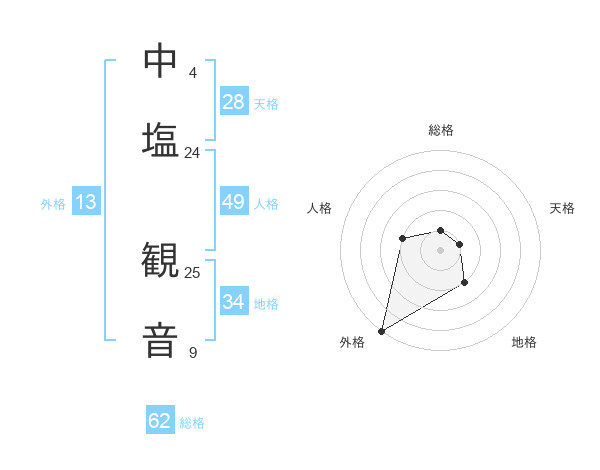 中塩 観音さんの総格は62画の1点!