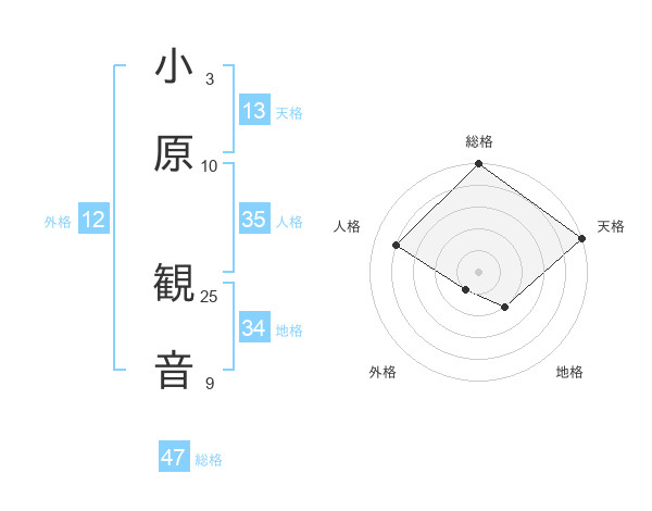 小原 観音さんの総格は47画の5点!