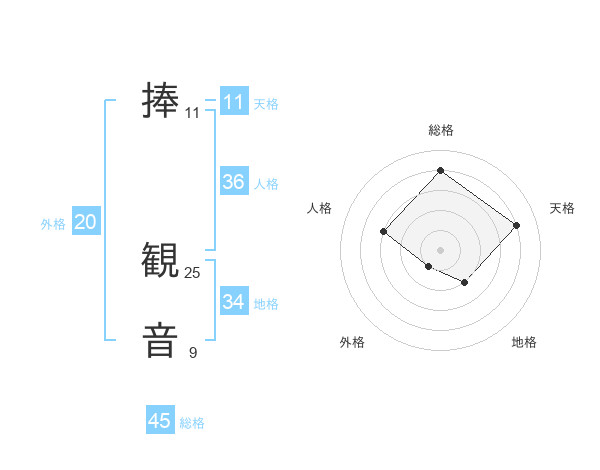 捧 観音さんの総格は45画の4点!
