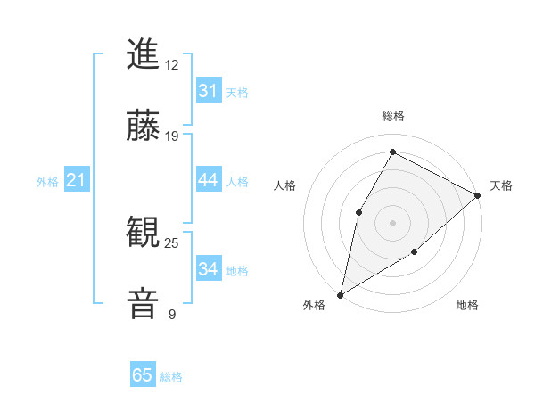 進藤 観音さんの総格は65画の4点!