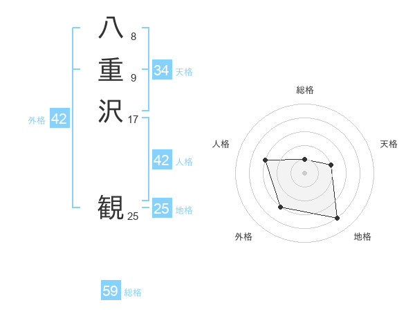 八重沢 観さんの総格は59画の1点!