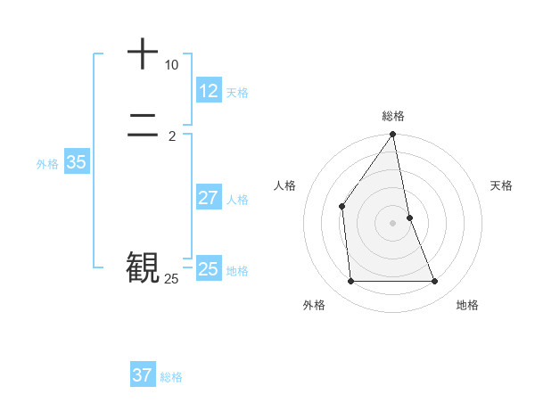 十二 観さんの総格は37画の5点!