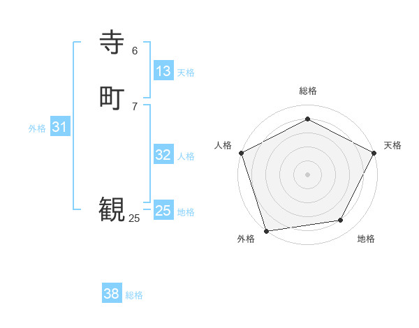 寺町 観さんの総格は38画の4点!