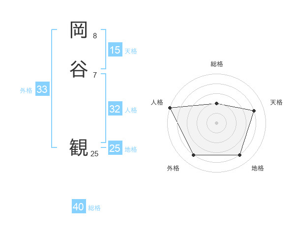 岡谷 観さんの総格は40画の2点!