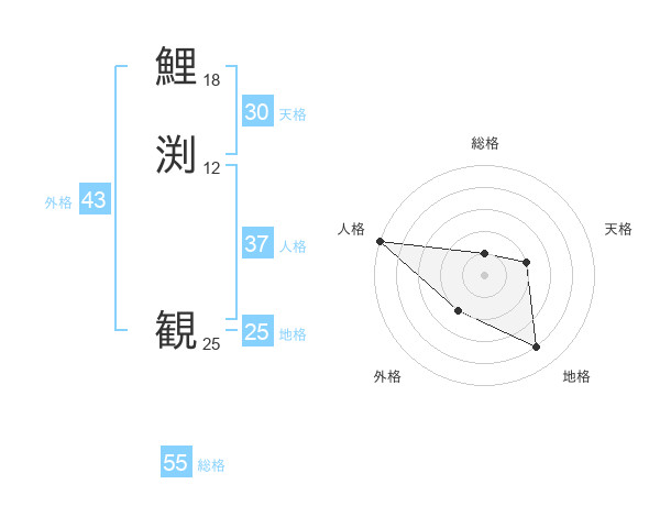 鯉渕 観さんの総格は55画の1点!