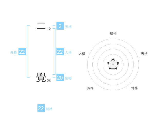 二 覺さんの外格は22画の1点