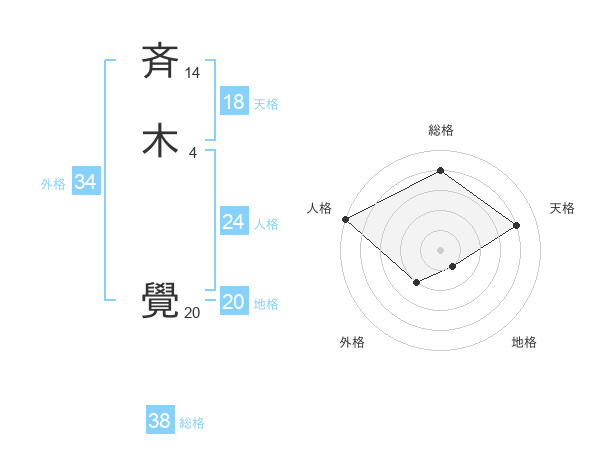 斉木 覺さんの総格は38画の4点!