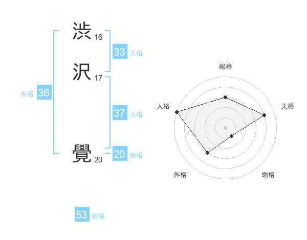 渋沢 覺さんの地格は20画の1点!