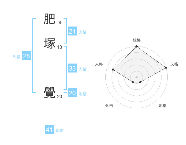 肥塚 覺さんの地格は20画の1点!