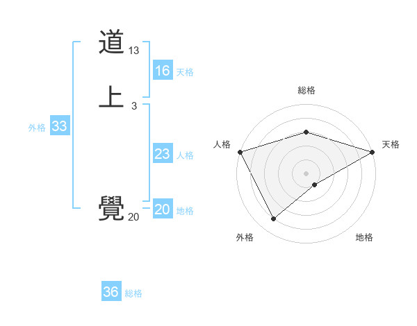 道上 覺さんの外格は33画の4点!