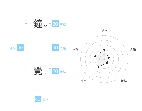 鐘 覺さんの地格は20画の1点!