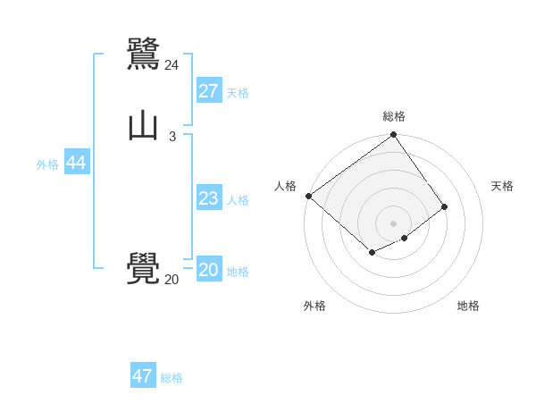 鷺山 覺さんの総格は47画の5点!