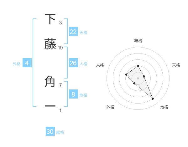 下藤 角一さんの総格は30画の2点!