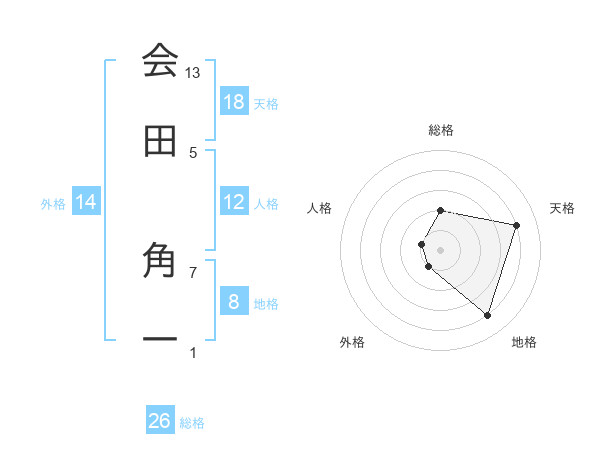 会田 角一さんの総格は26画の2点!