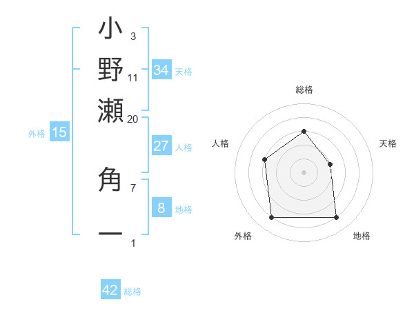 小野瀬 角一さんを姓名の画数から五運を鑑定