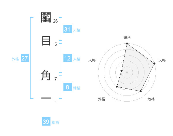 鬮目 角一さんの総格は39画の5点!