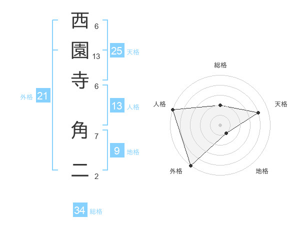 西園寺 角二さんを姓名の画数から五運を鑑定