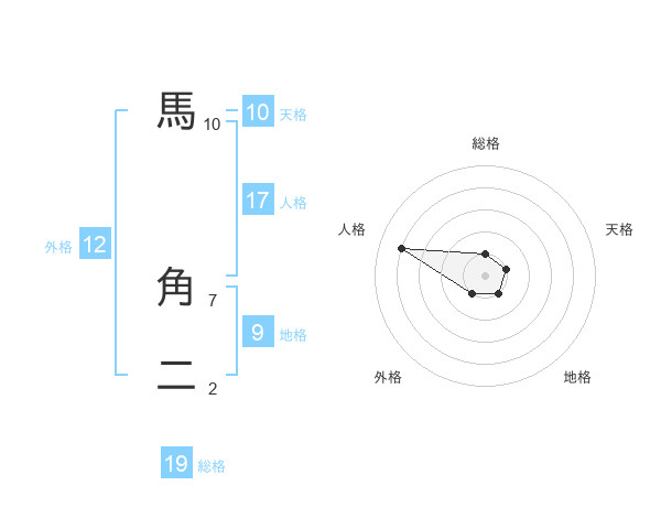 馬 角二さんの外格は12画の1点!