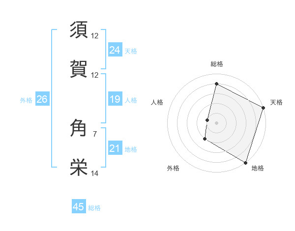 須賀 角栄さんの総格は45画の4点