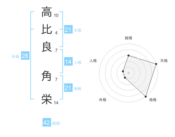 高比良 角栄さんを姓名の画数から五運を鑑定