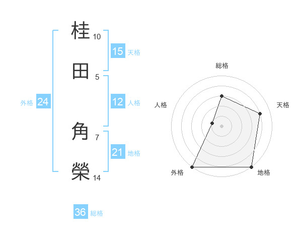 桂田 角榮さんを姓名の画数から五運を鑑定
