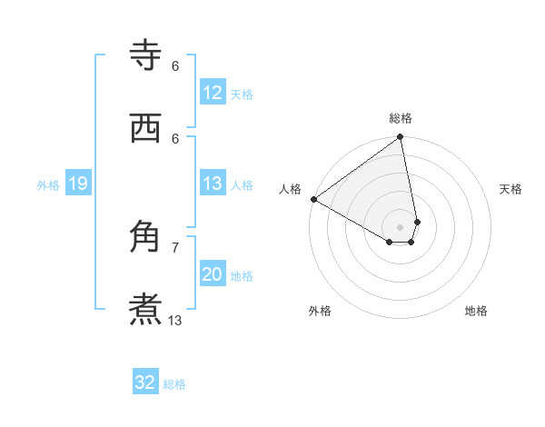 寺西 角煮さんの総格は32画の5点!