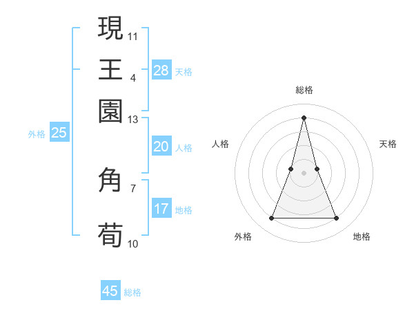 現王園 角荀さんを姓名の画数から五運を鑑定
