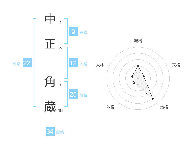 中正 角蔵さんの総格は34画の2点!